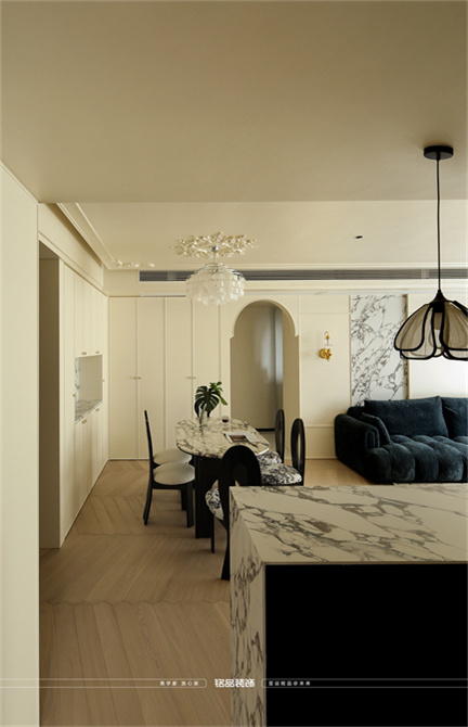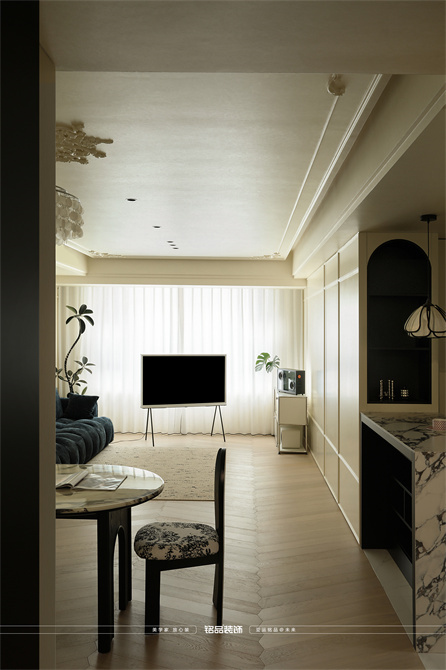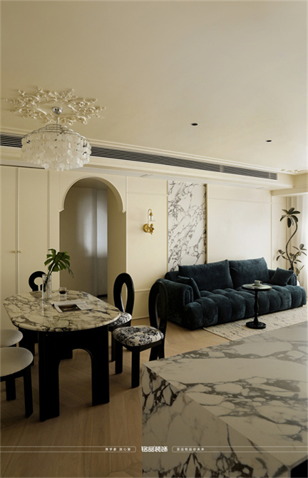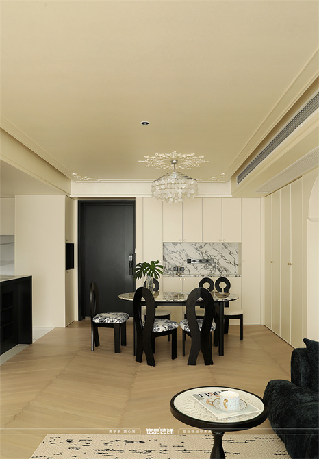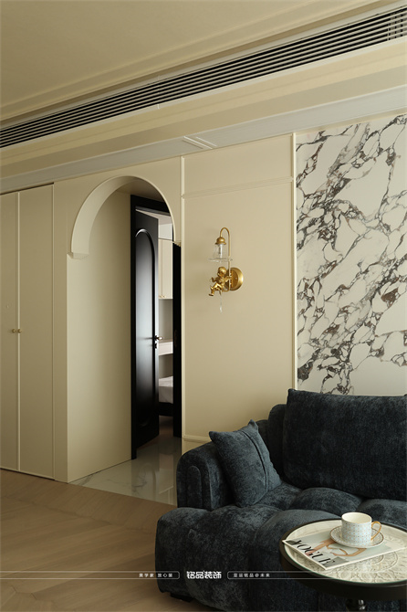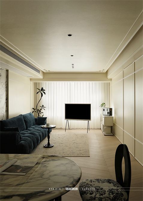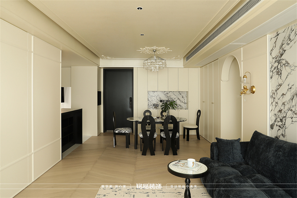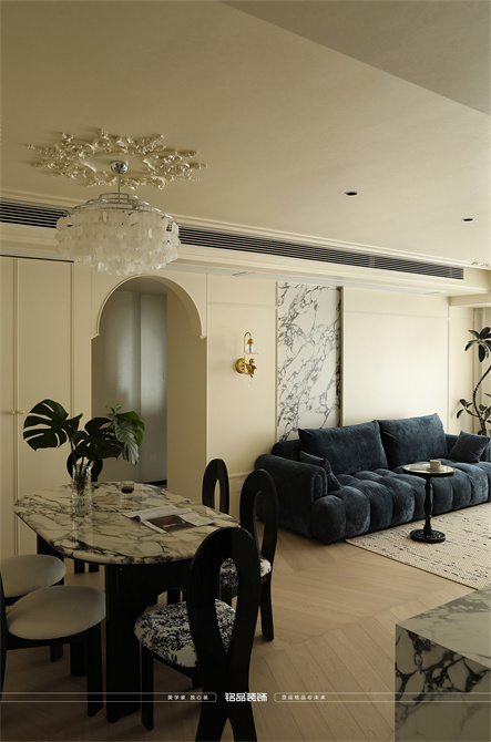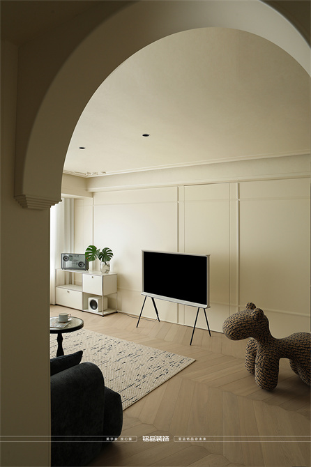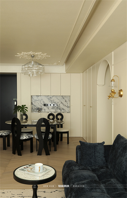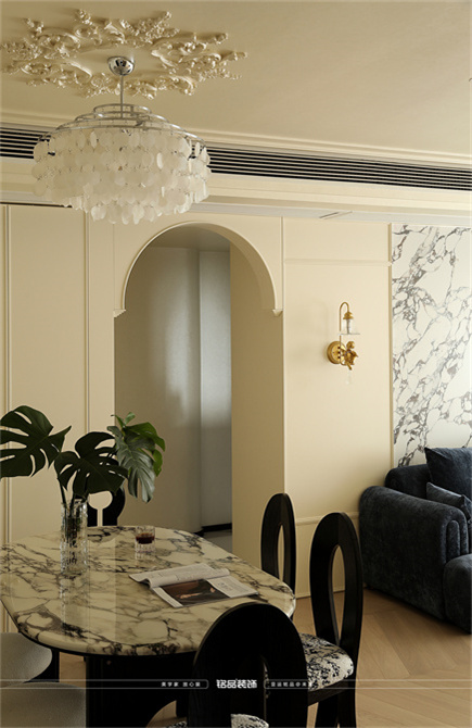 法式复古不是完全照搬法国宫廷风格,而是提取经典元素(如雕花、线条、材质),与现代生活需求结合。 保留石膏线、护墙板等传统细节,但简化繁复度(如用简约款雕花)。避免高饱和度的艳丽色彩,以柔和的中性色为基调,局部点缀深色或复古色。