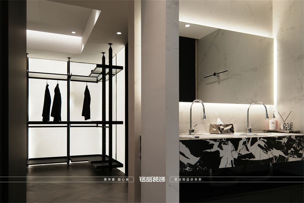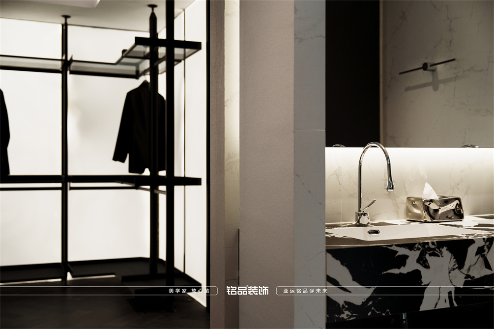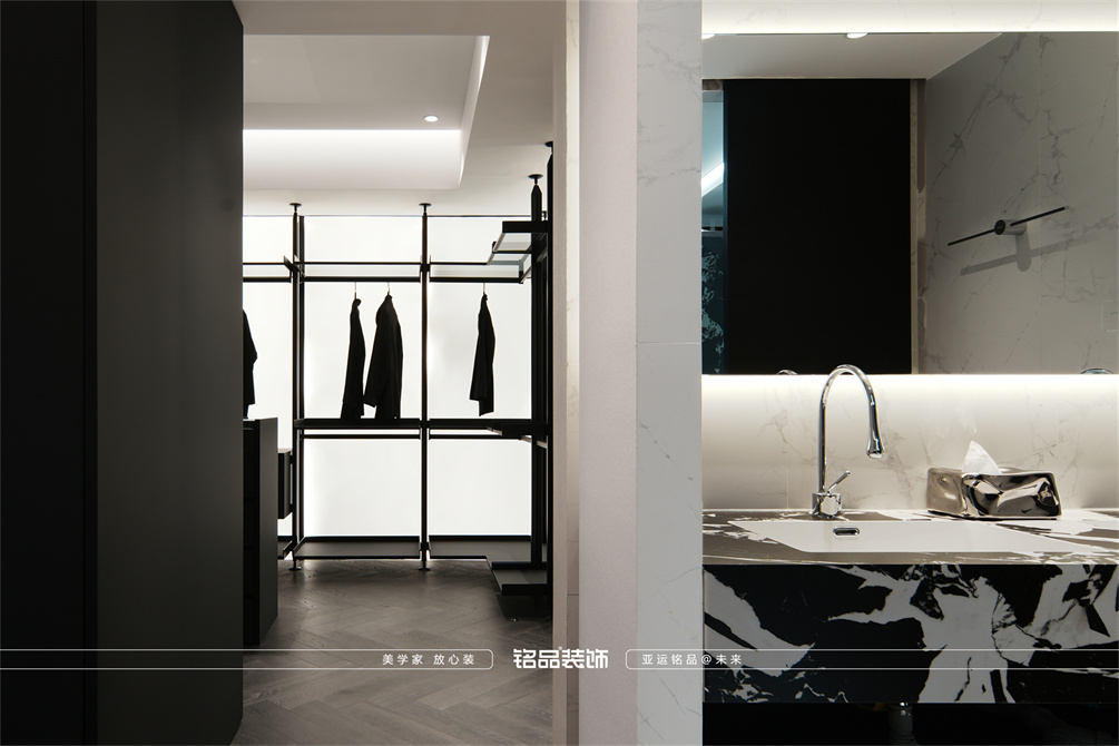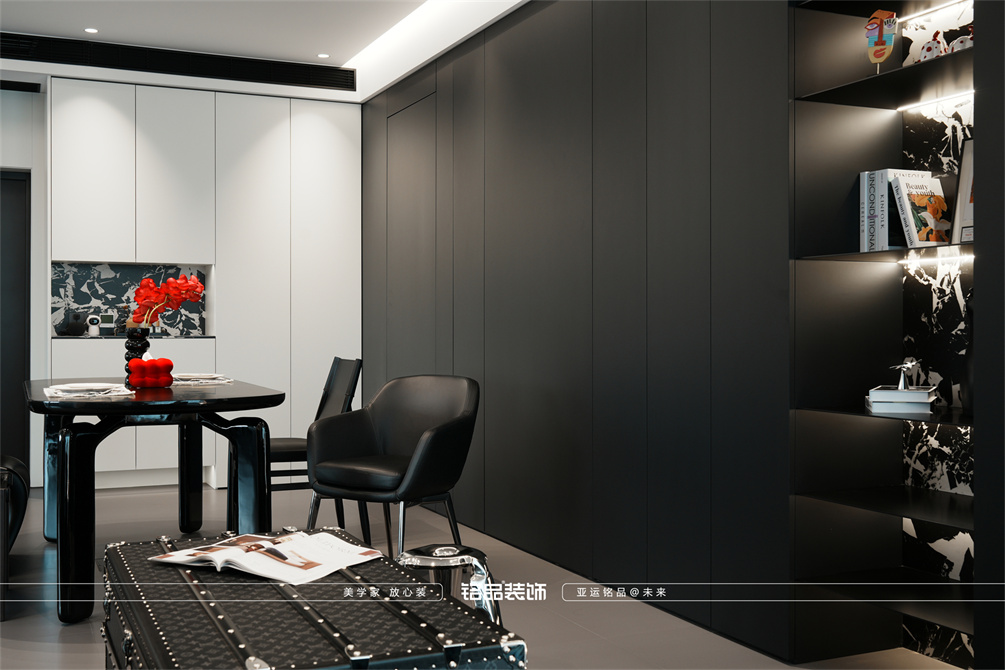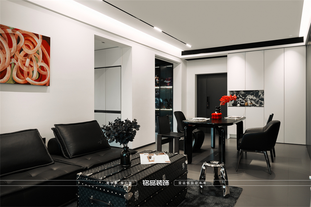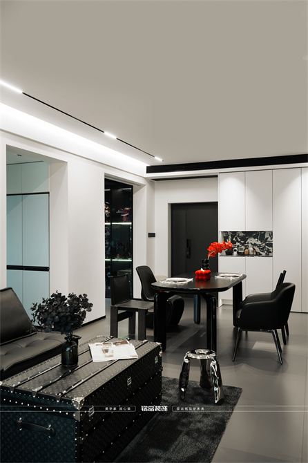 无主灯设计,通过简化形式与功能,追求“少即是多”的哲学,强调功能性与纯粹美学的平衡,并延伸为一种生活态度。以直线、直角为主,避免复杂雕刻,通过纯几何形态创造层次感。以黑、白、灰单色为基础,结合皮质、金属等多样化材料,形成低调而富有张力的视觉体验。刻意保留空白区域,引导视觉焦点并增强空间呼吸感。