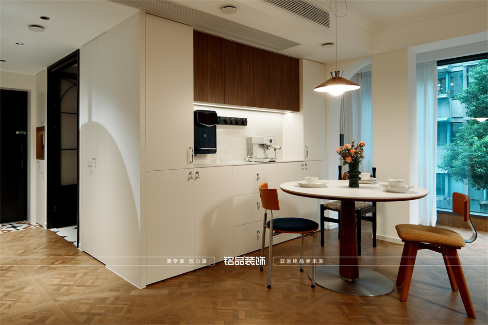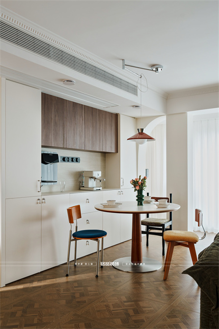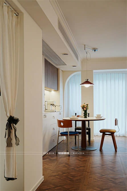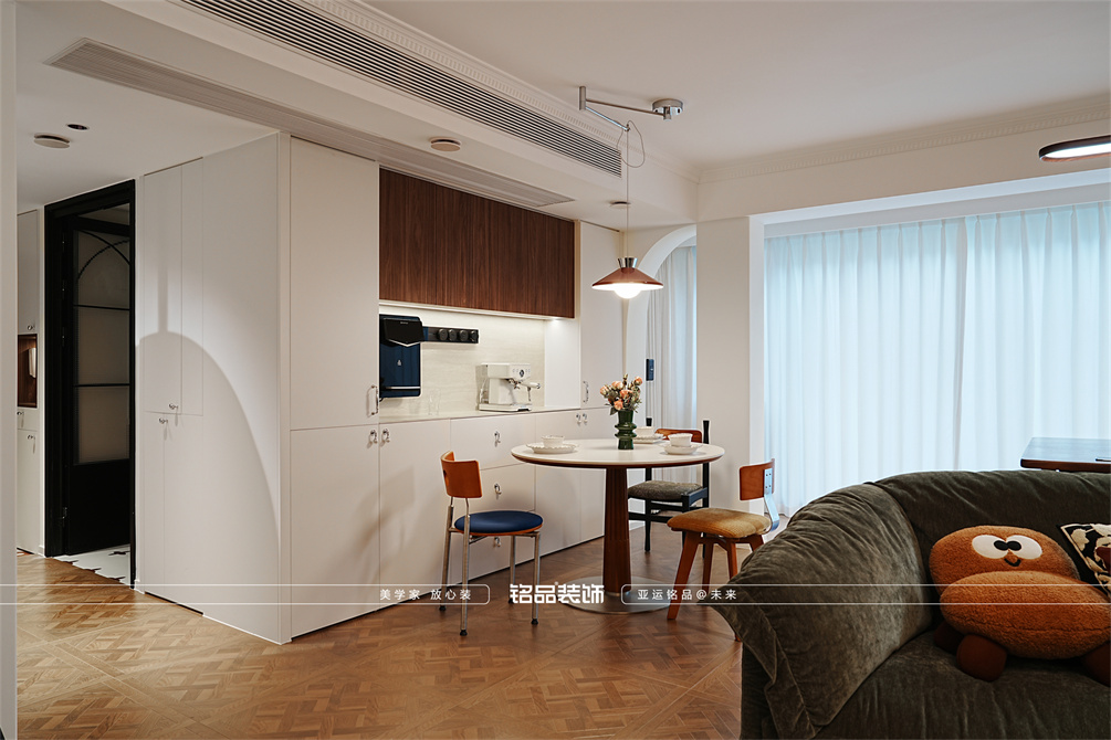 把空间利用率做到最大化,增加采光通透感。再小的点上做加法。增加了一些比较讨巧的小造型,每个空间的功能也都合理利用,增加一些中古的元素。