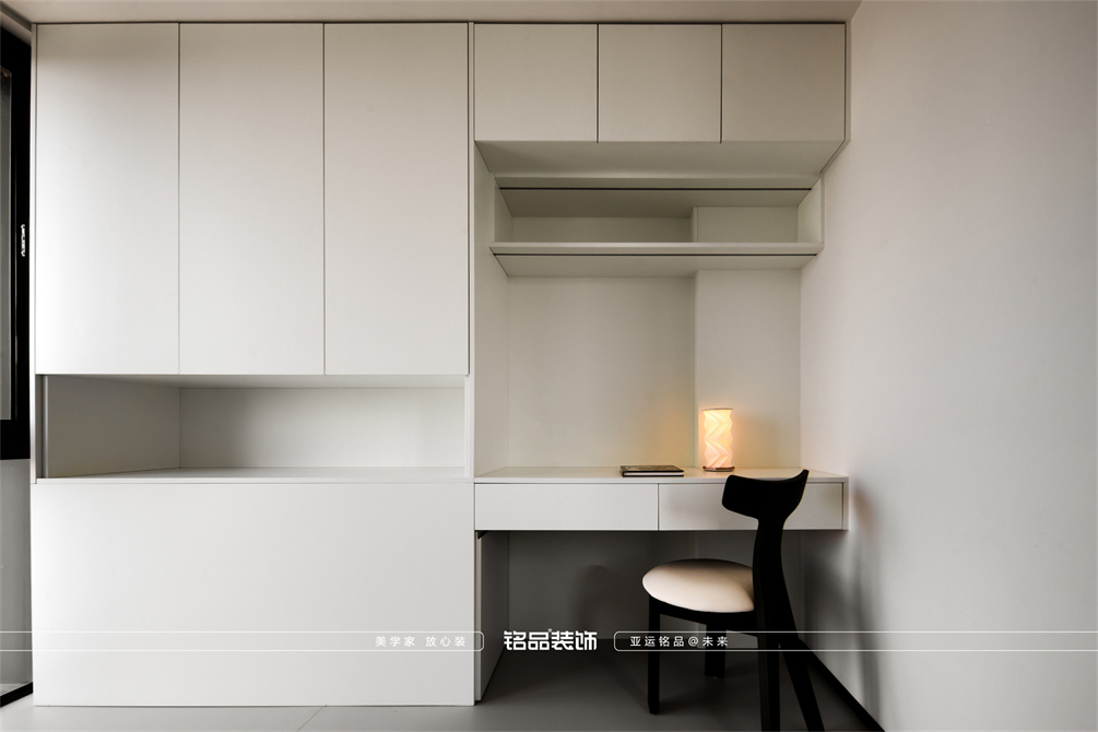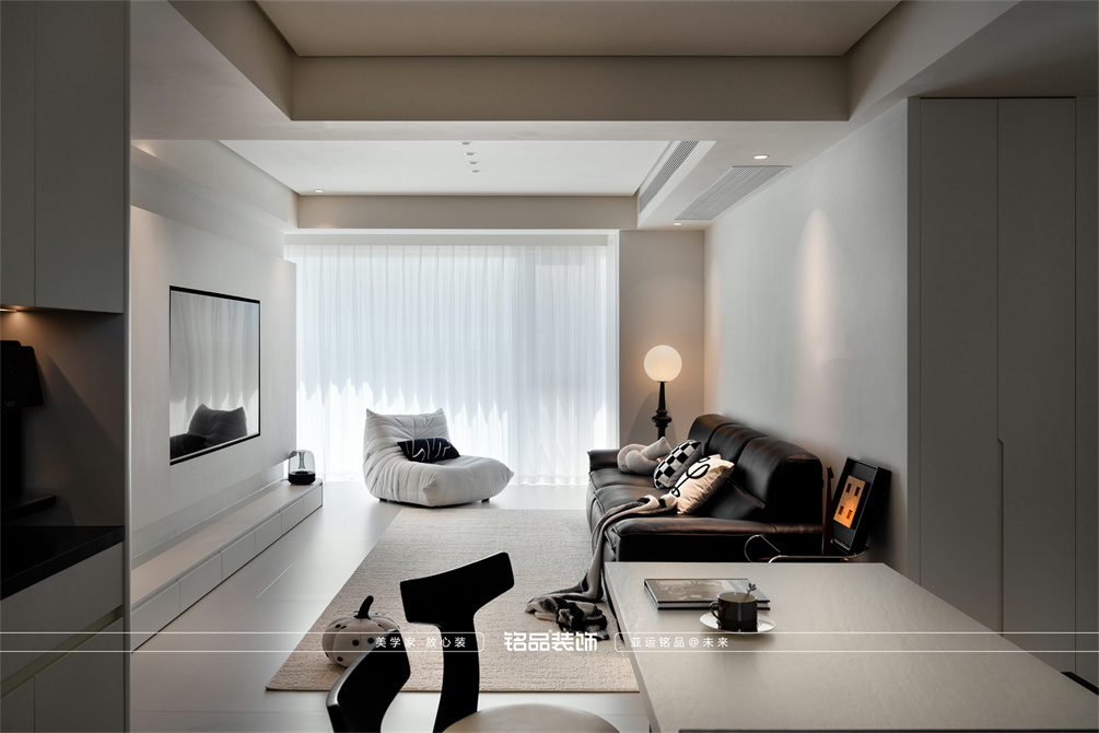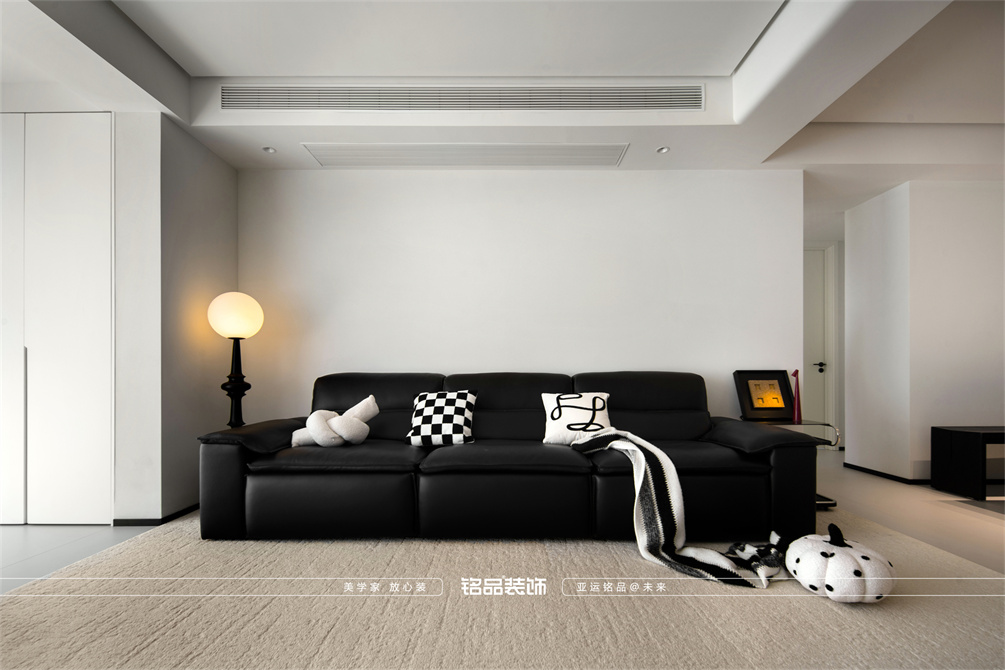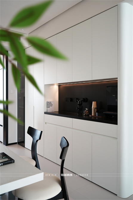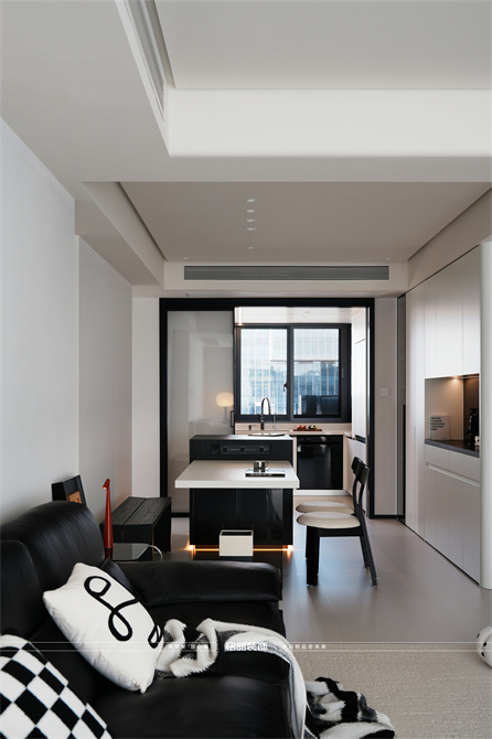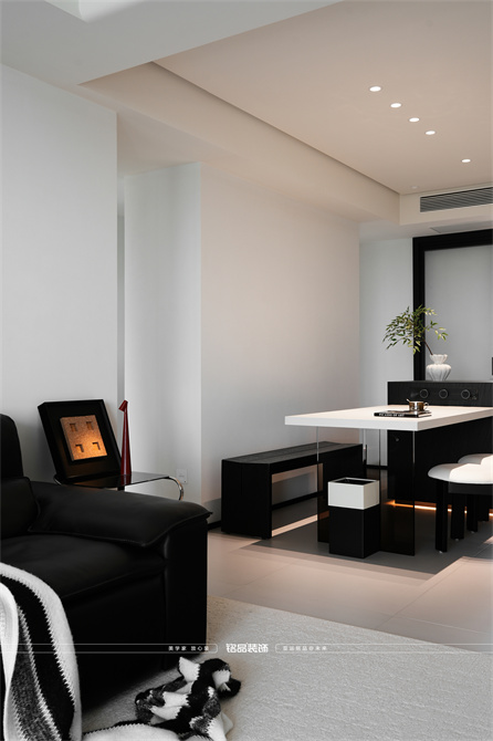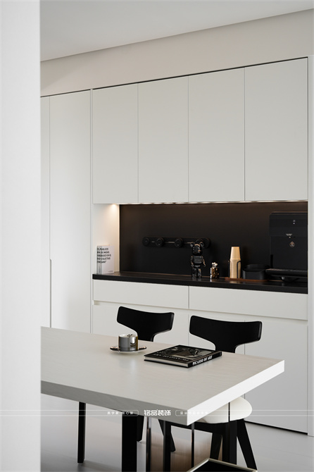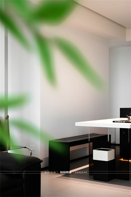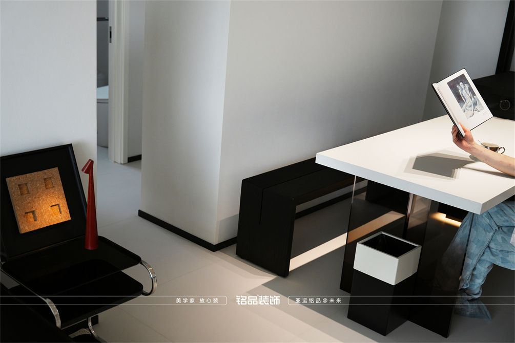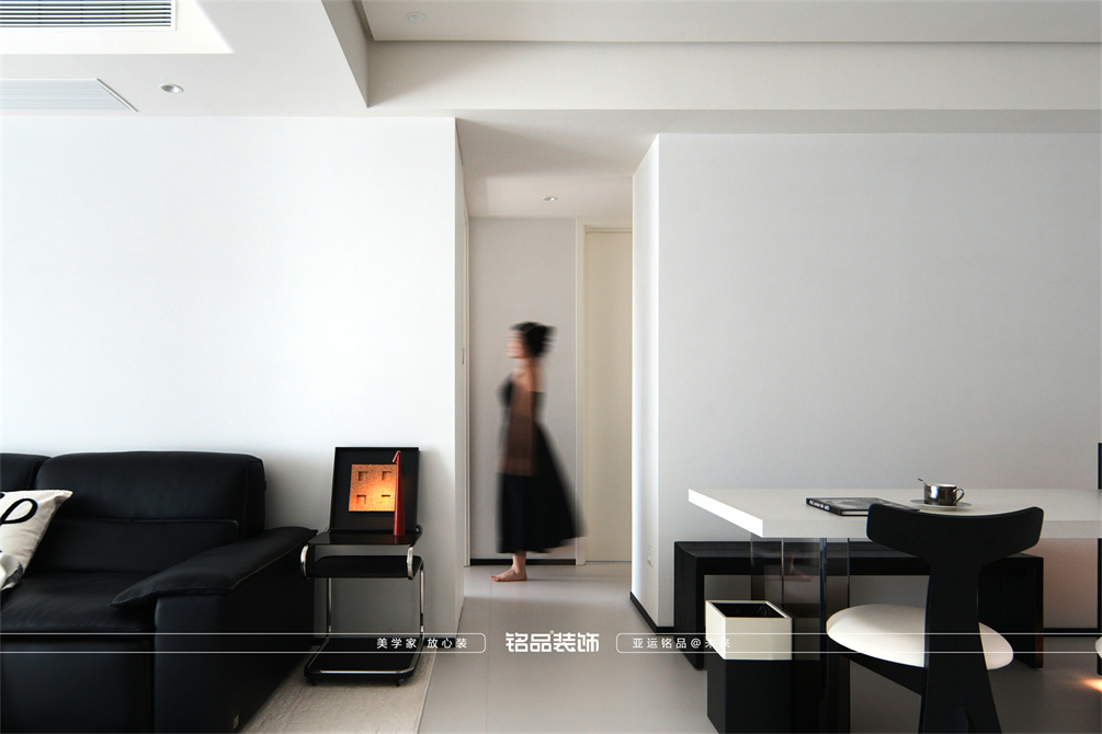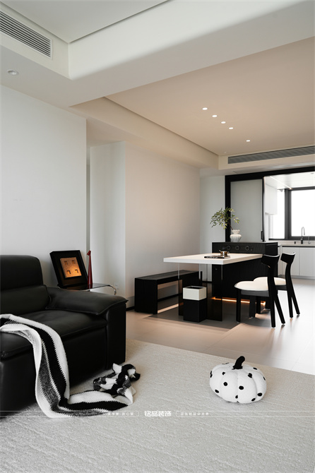 黑白为主,极简风显得干净利落,和客户强迫症性格相符,线条感强,空间方正,创造一个能让人放松、思考、远离外界喧嚣的庇护所。通过极致的简化,引导居住者关注内心,体验空间带来的宁静、秩序与平和感。