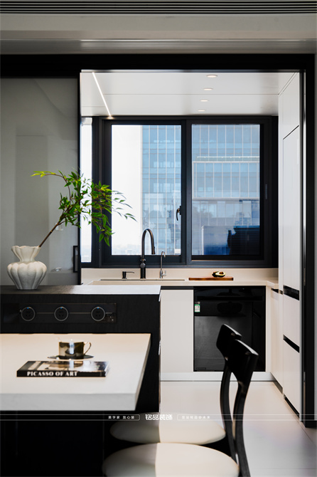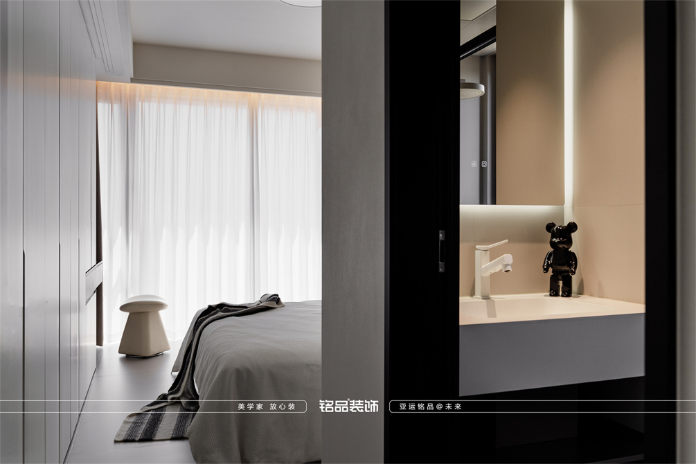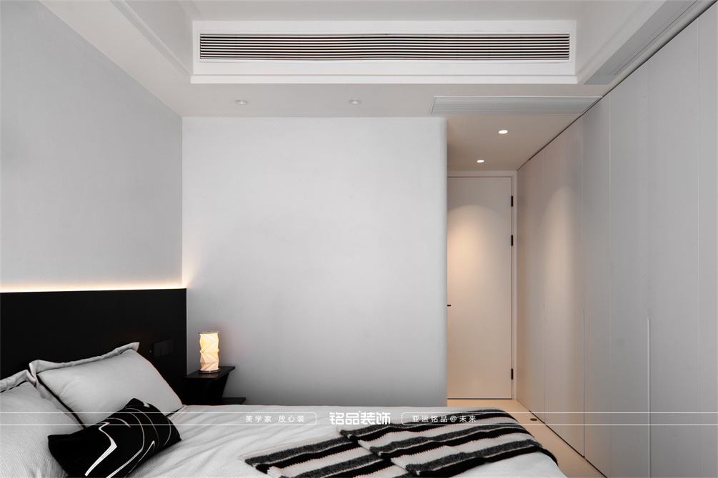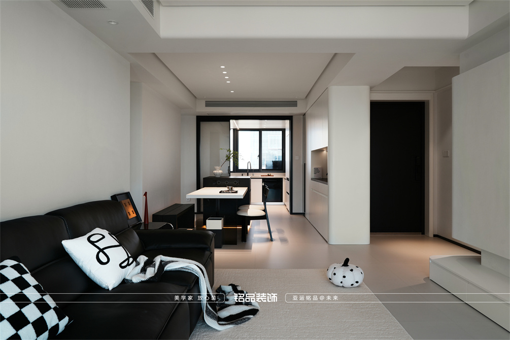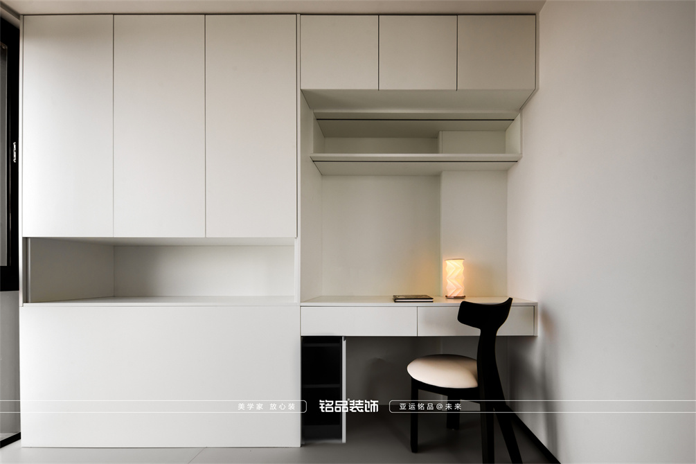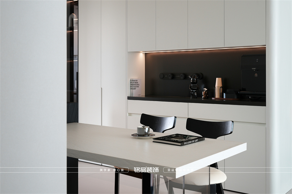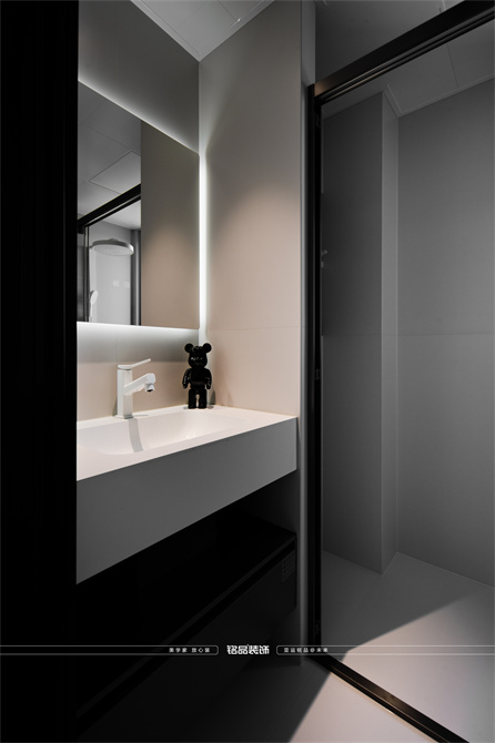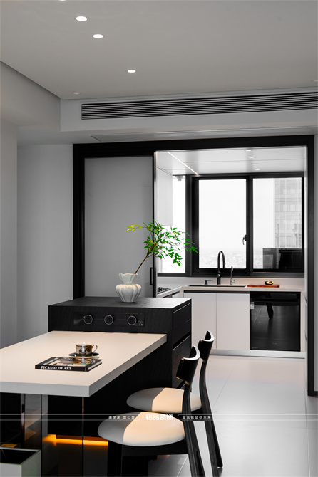 黑白为主,极简风显得干净利落,和客户强迫症性格相符,线条感强,空间方正,创造一个能让人放松、思考、远离外界喧嚣的庇护所。通过极致的简化,引导居住者关注内心,体验空间带来的宁静、秩序与平和感。