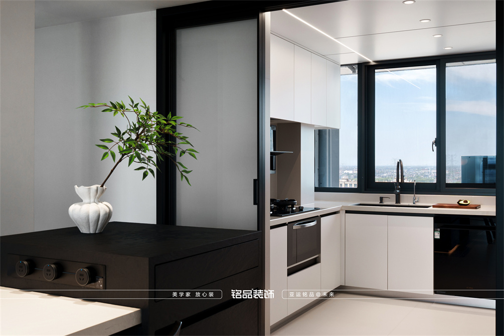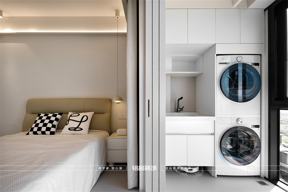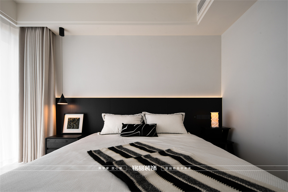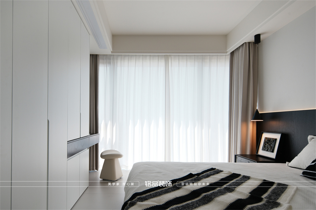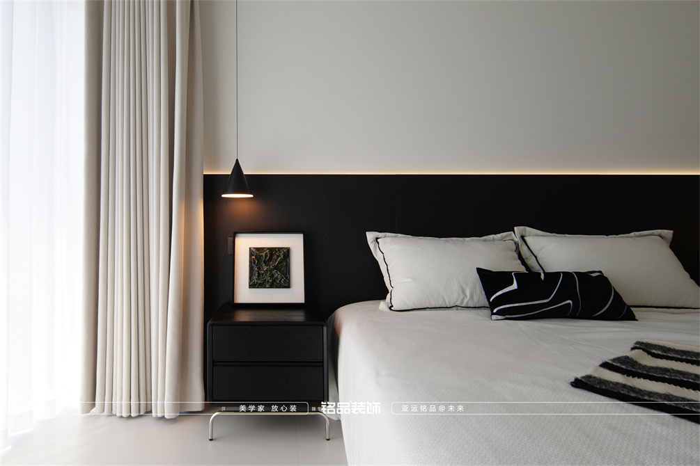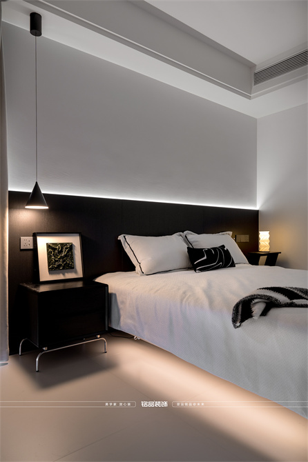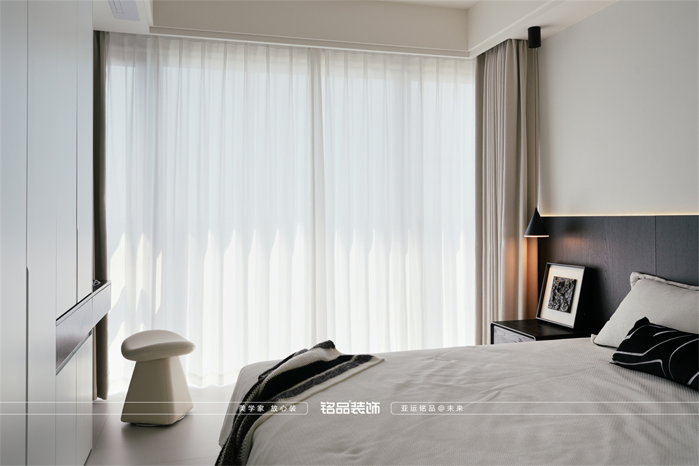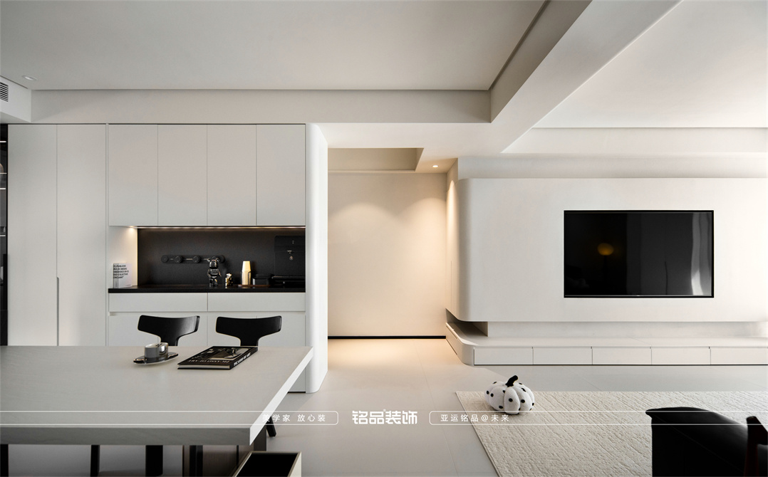 黑白为主,极简风显得干净利落,和客户强迫症性格相符,线条感强,空间方正,创造一个能让人放松、思考、远离外界喧嚣的庇护所。通过极致的简化,引导居住者关注内心,体验空间带来的宁静、秩序与平和感。