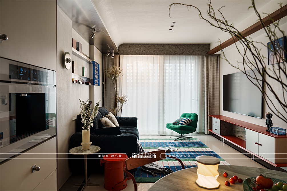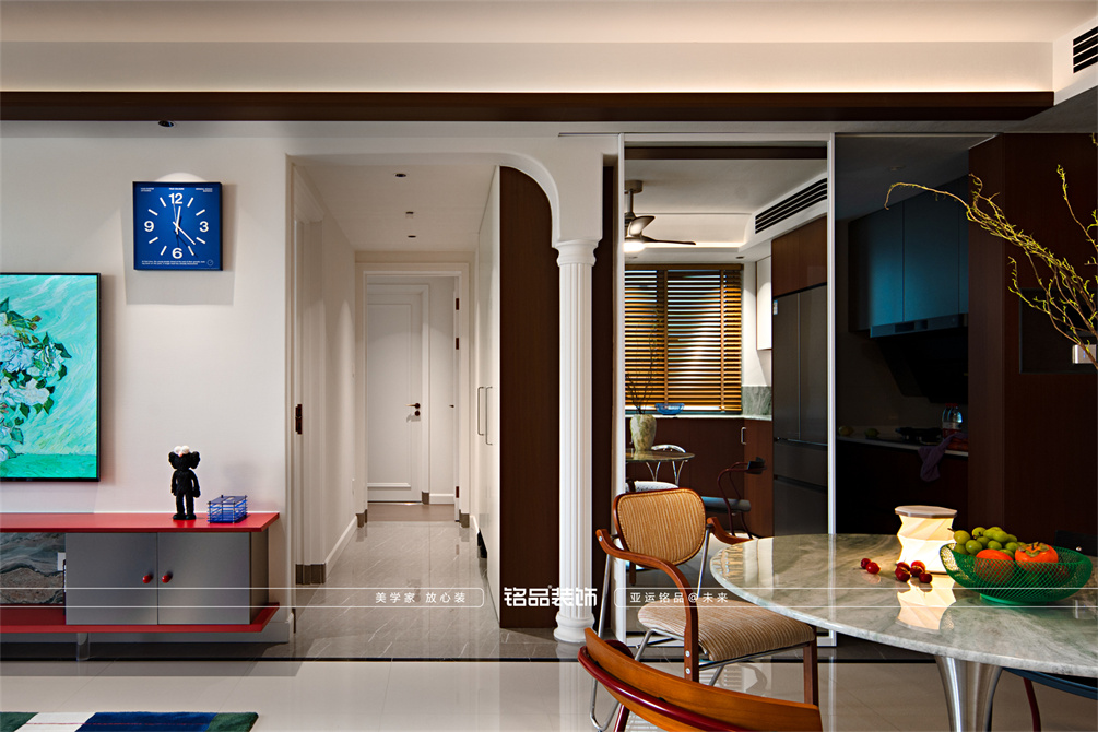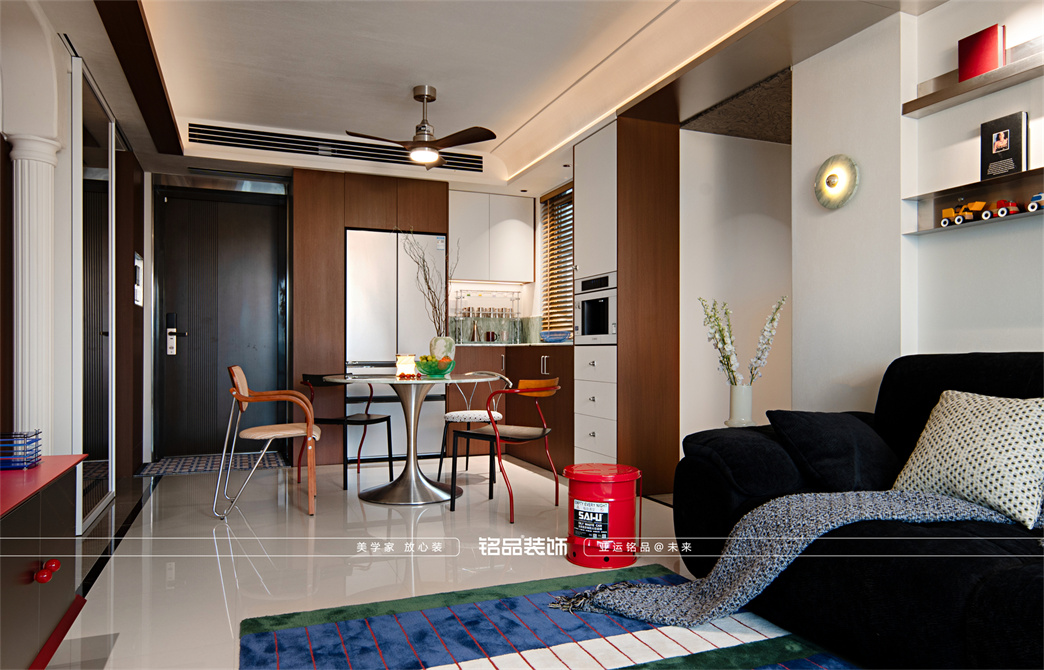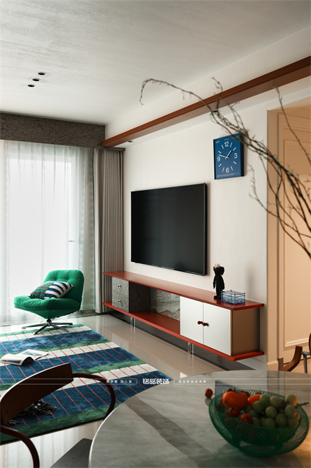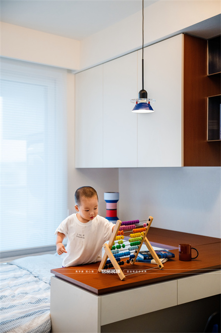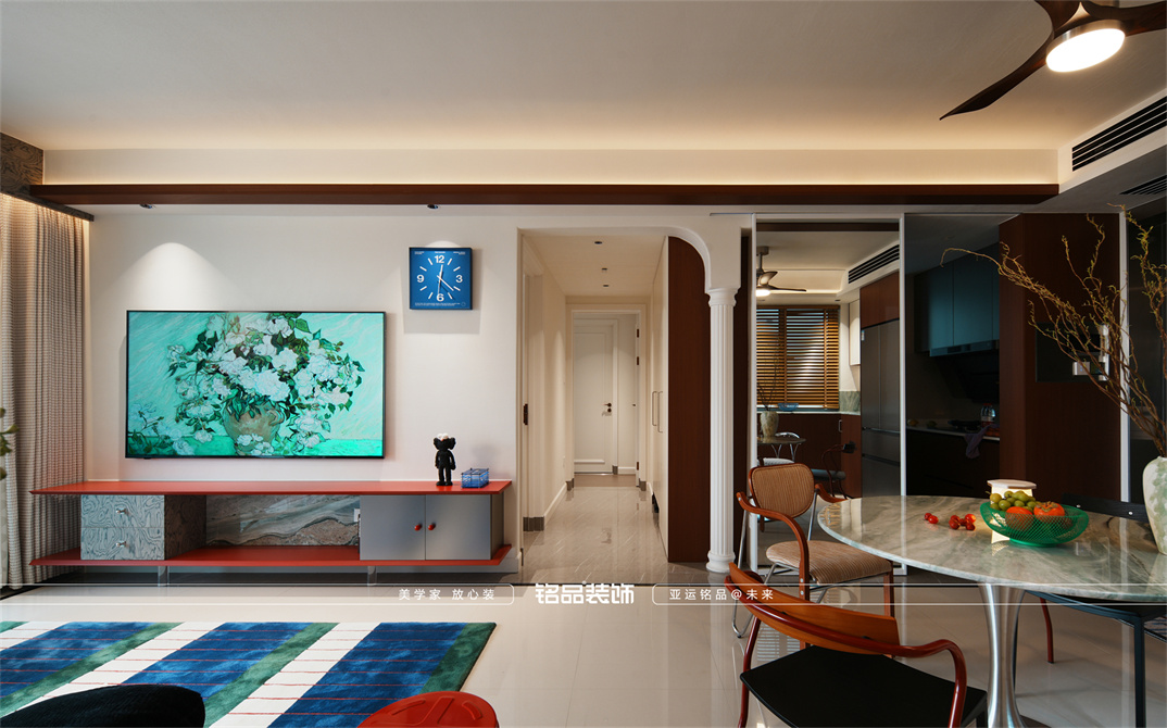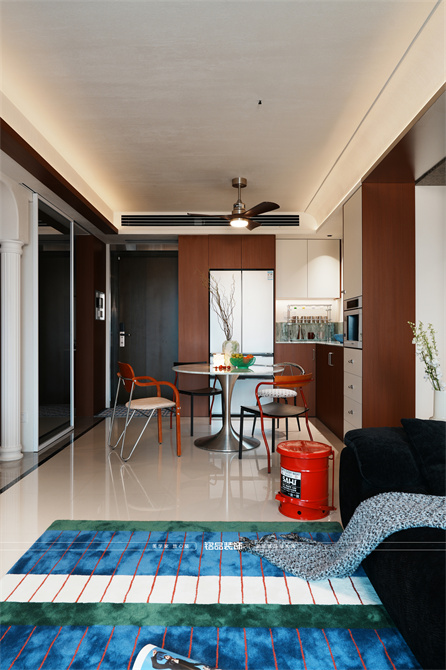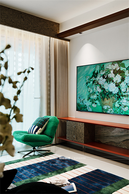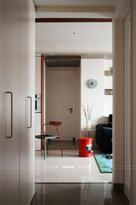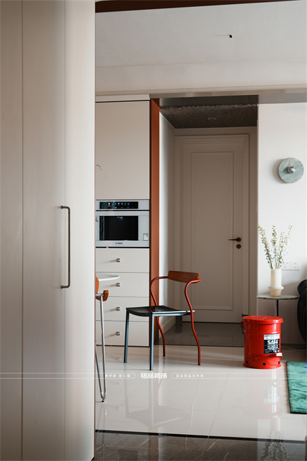 让千篇一律的精装房迸发出更多的多巴胺,色系上面采用包豪斯经典三原色红黄蓝搭配业主喜欢的绿色,饱和度拉满,吸引眼球的同时增加明亮度,让家更有温度