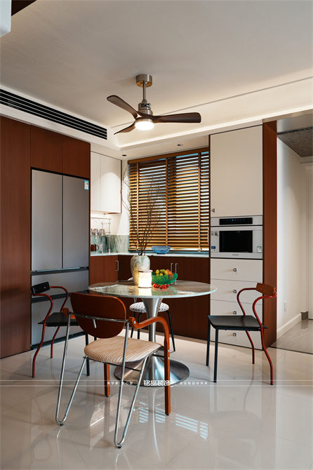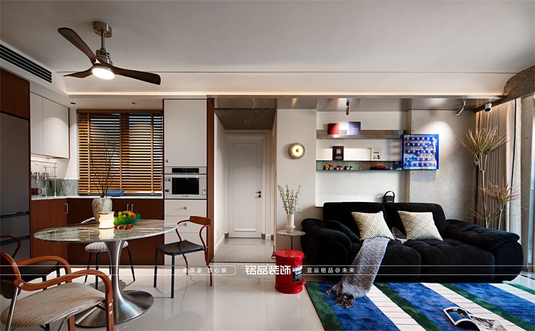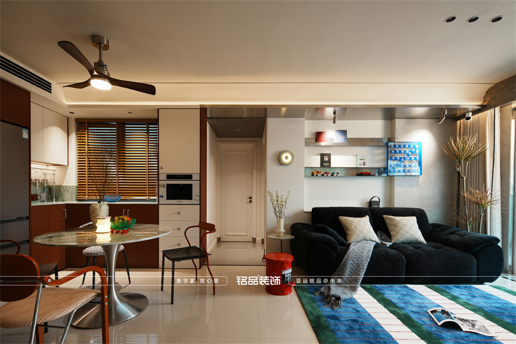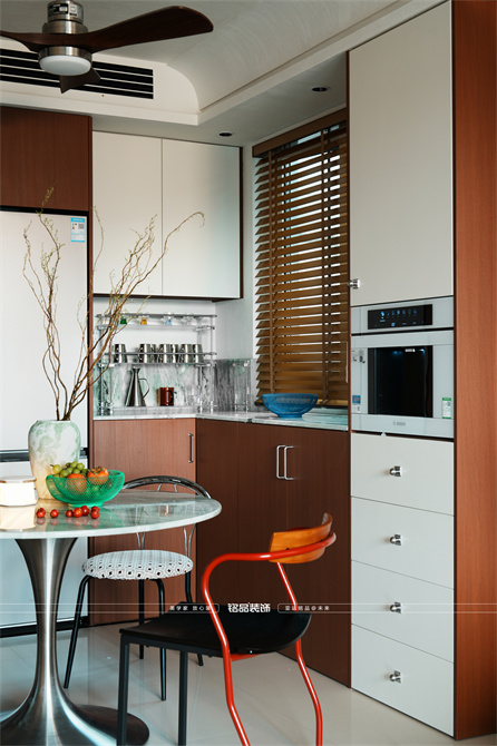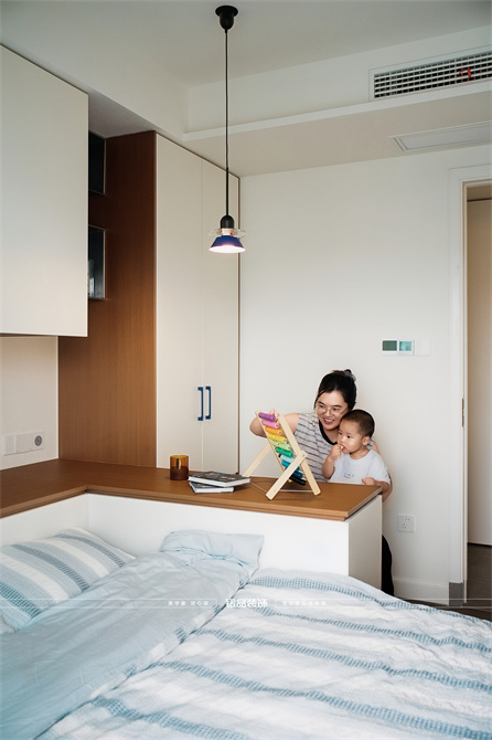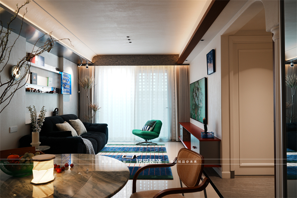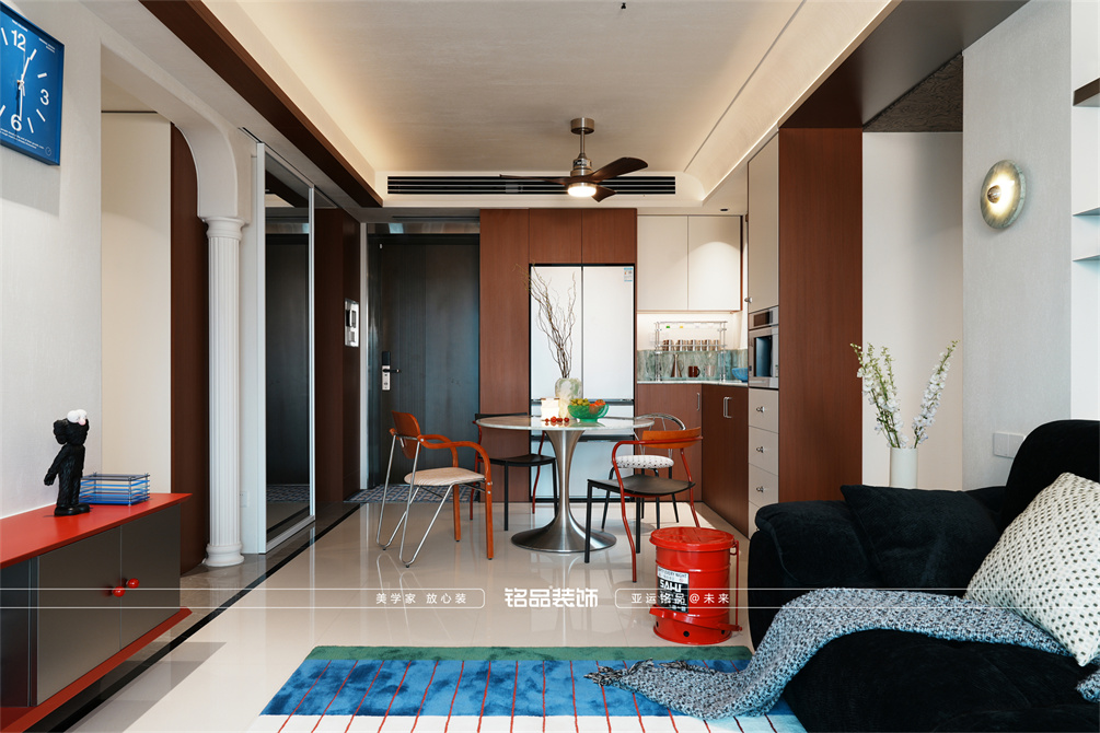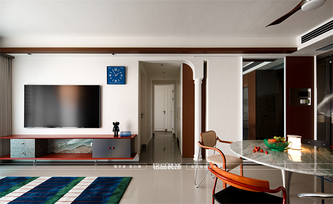 让千篇一律的精装房迸发出更多的多巴胺,色系上面采用包豪斯经典三原色红黄蓝搭配业主喜欢的绿色,饱和度拉满,吸引眼球的同时增加明亮度,让家更有温度